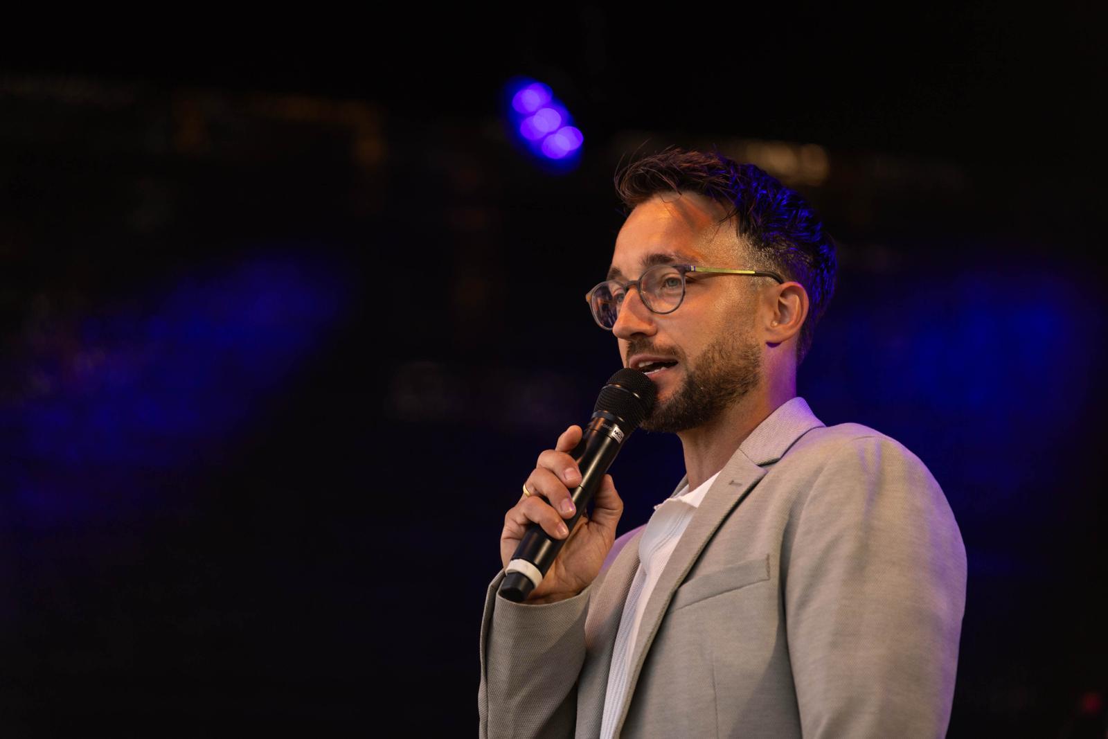 Als Moderator bringe ich inspirierende Gedanken, eine klare Haltung, Motivationsimpulse und Inhalte, die berühren und bewegen – nicht nur witzige Moderation, sondern Mehrwert für Ihr Publikum.