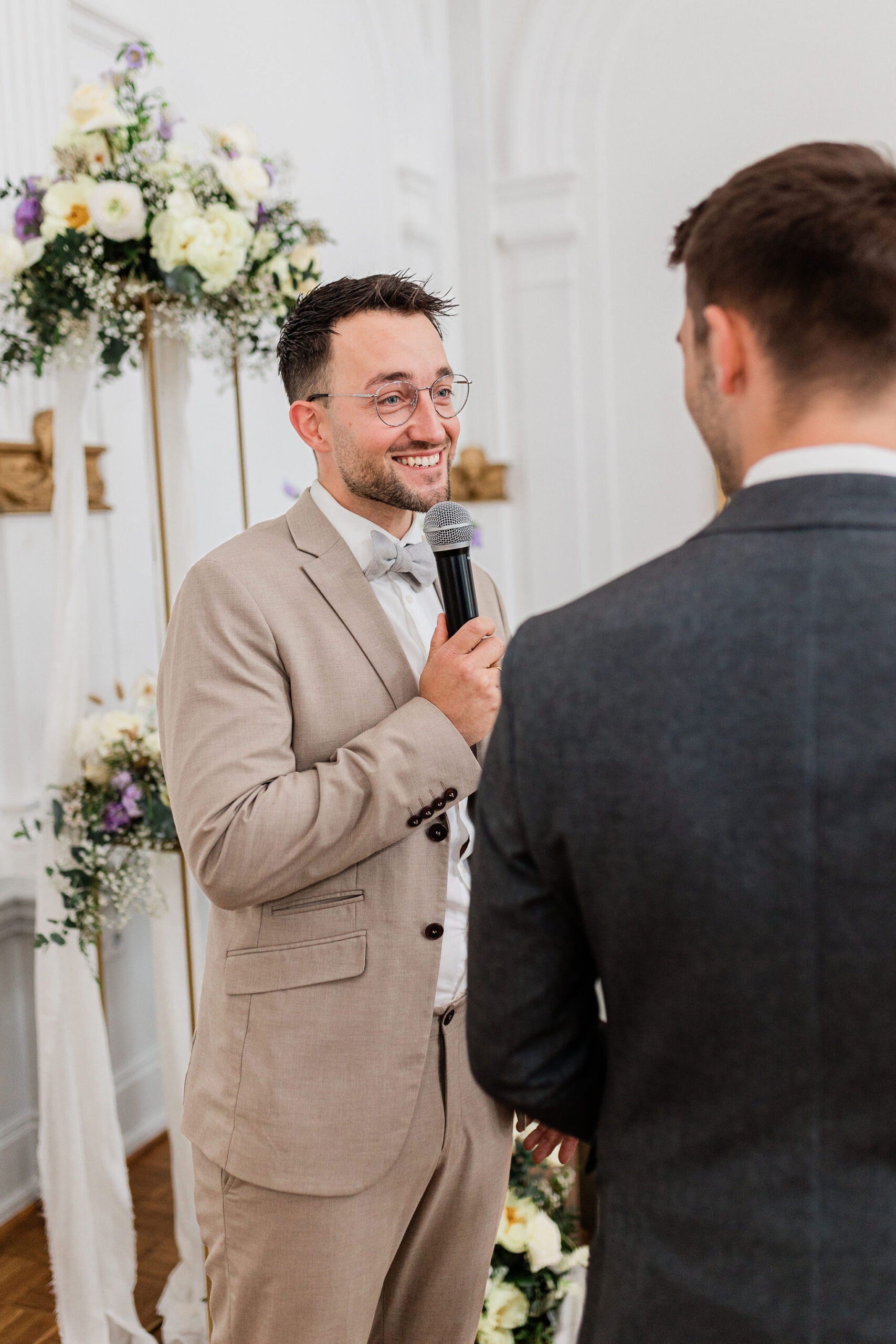 Phil nahm sich viel Zeit, um uns kennenzulernen, unsere Geschichte zu verstehen und all die kleinen Details einzufangen, die unsere Beziehung so besonders machen. Seine Rede war nicht nur unglaublich persönlich, sondern auch voller Wärme, Humor und Emotionen – eine perfekte Mischung, die nicht nur uns, sondern auch all unsere Gäste berührt hat.